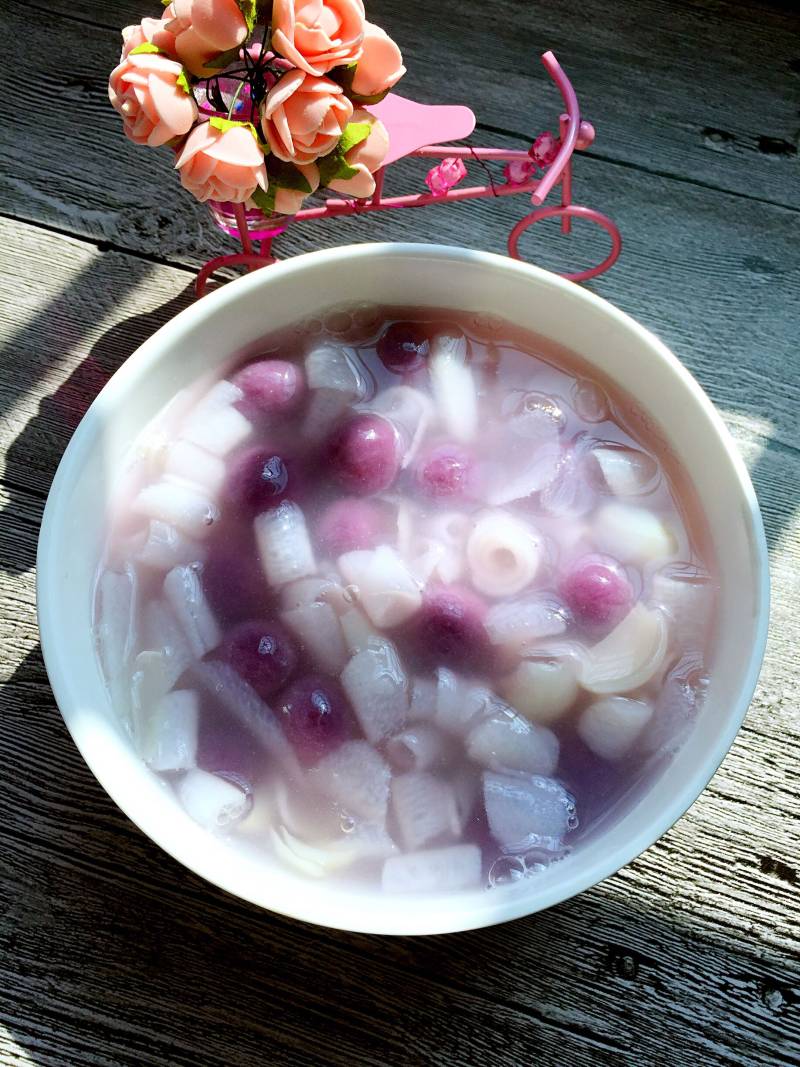 2:锅中煮开水,放入紫薯汤圆【汤圆的做法上次写过了】煮至汤圆浮在水面。