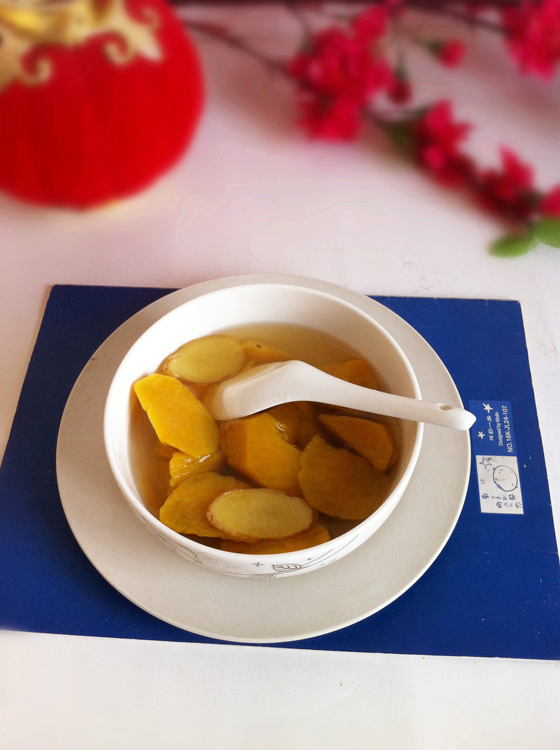 5:牛奶中加入姜片和白糖,煮至响边后倒入碗中即可。
