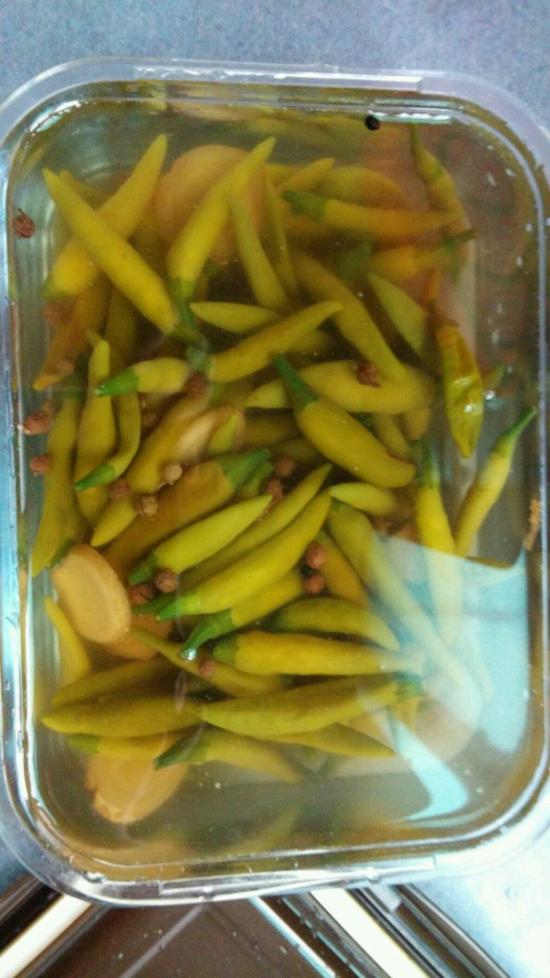 2:超市买来的一罐泡椒,待开水温凉后全部倒入。