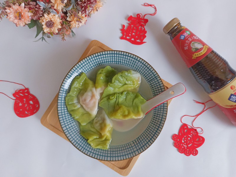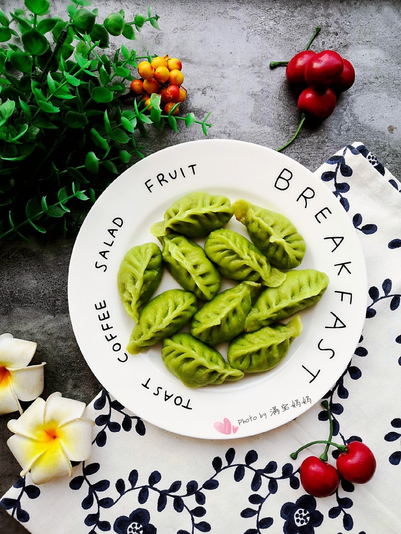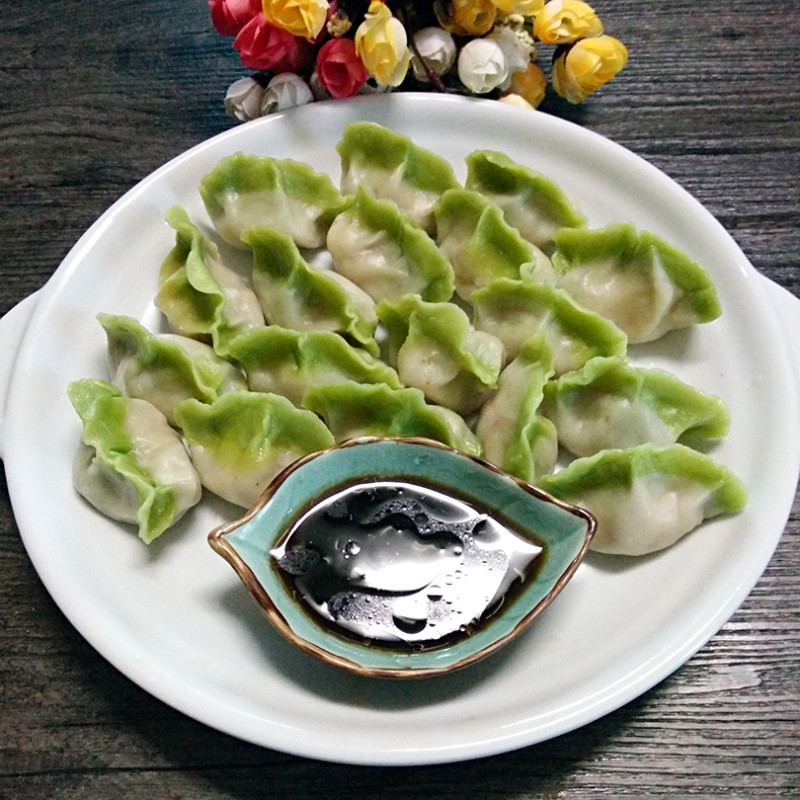 8:煮出的饺子呈翠绿色,郁郁葱葱,新年家里吃的这个饺子,很有创意,小孩子也爱吃^_^