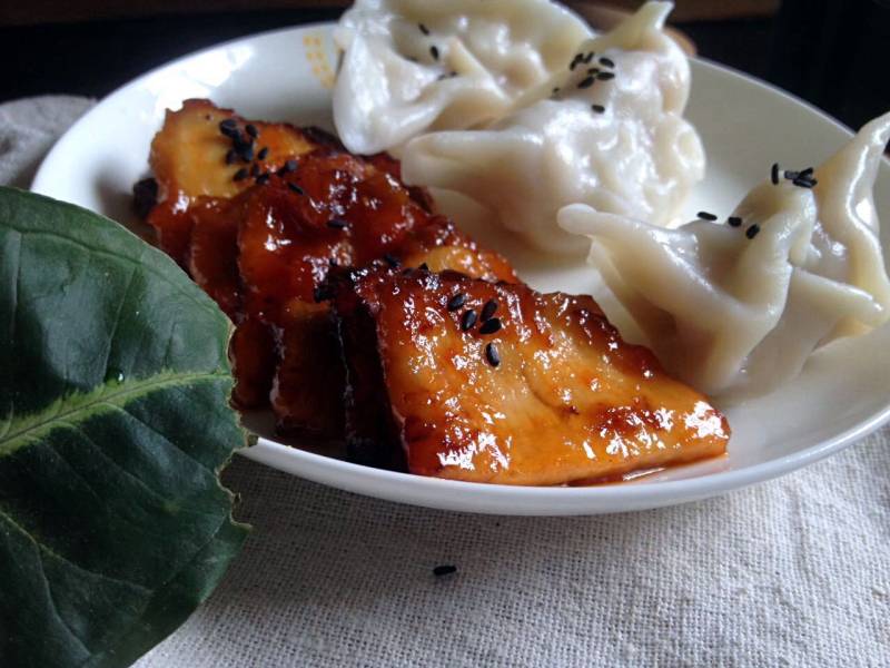 1:鸡胸肉划开加上料酒,生抽,少许盐和醋,涂上蒜末,孜然和芝麻。最后加上少许油腌制30分钟以上。油不要加得太多。