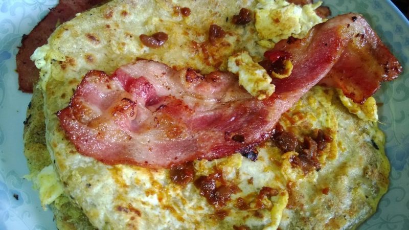 1:我们家培根是放冷冻的,先拿出来化开,印度飞饼也先拿出来;