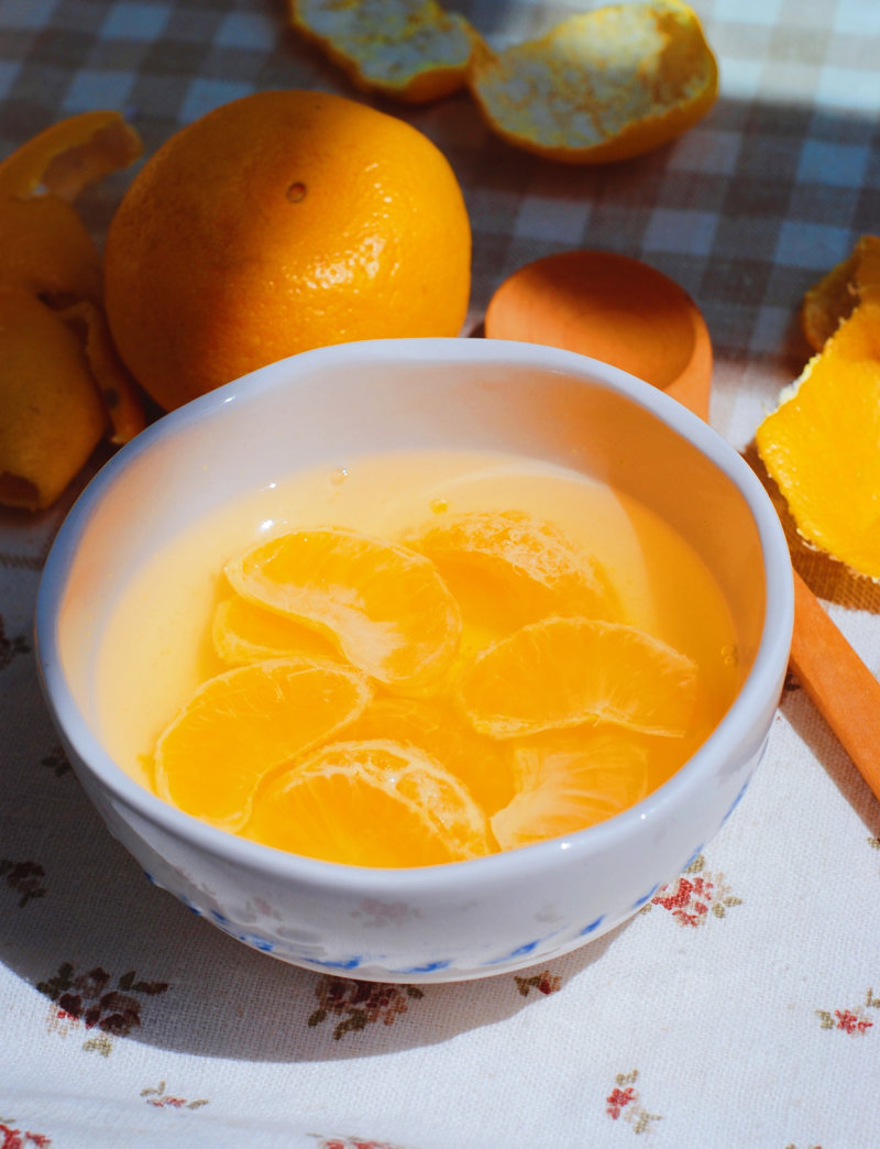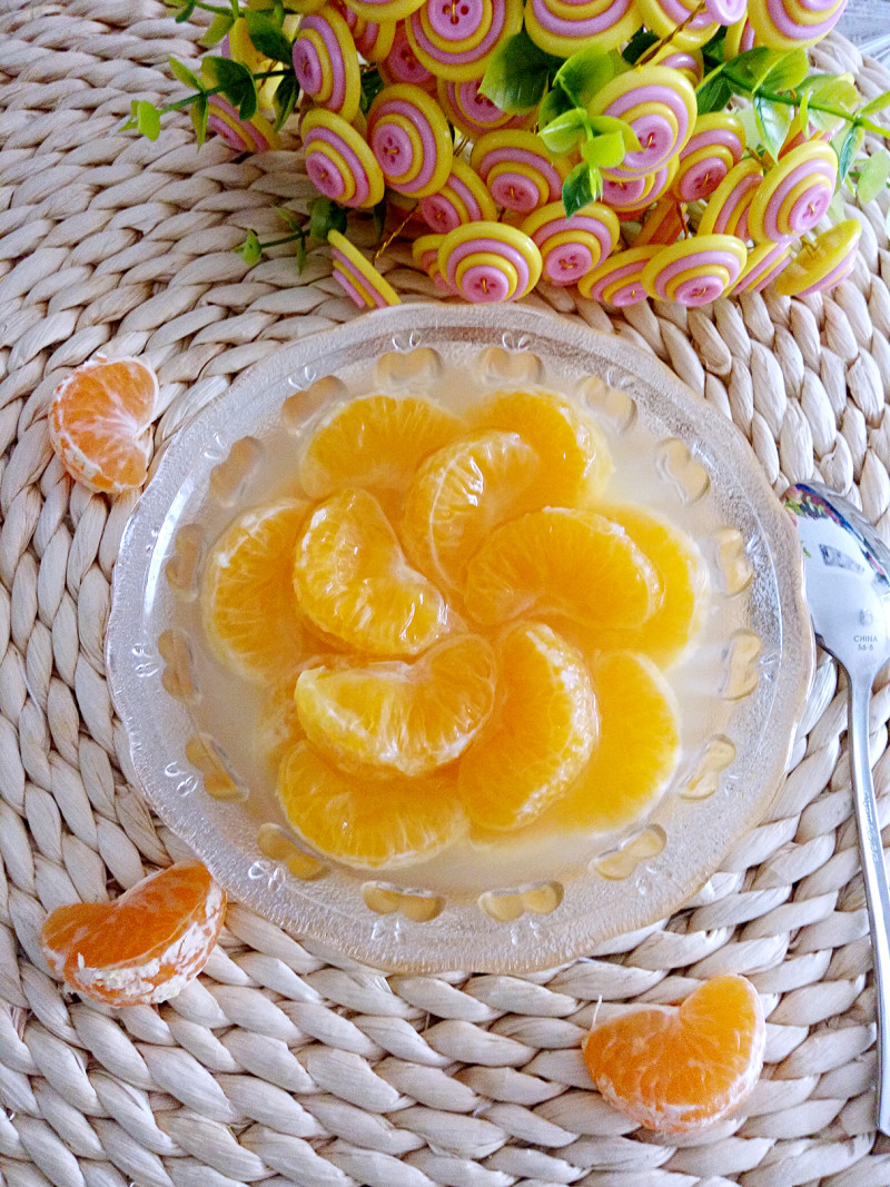 1:橘子大家可以选用砂糖橘,也可以用比较酸的,吃不掉的用来做橘子罐头,加了冰糖一煮,橘子就会变得酸酸甜甜的。