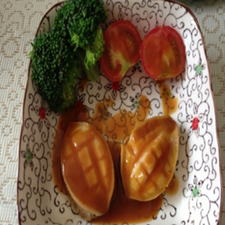 4:热锅少许橄榄油加鲍鱼汁、蚝油、海鲜酱油、冰糖、珍选原汁鲜、水淀粉熬制浓稠,出锅浇汁摆盘