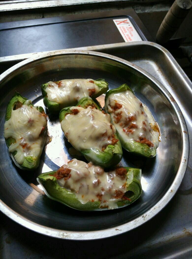 9:青椒盛满肉末,放进烤箱180度15分钟