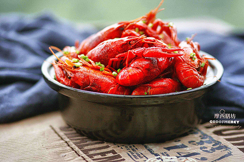 GODOFMERCY摩西膳坊小贴士:1.最好戴只手套清洗龙虾,预防小龙虾把手夹伤。2.小龙虾以鲜活为佳,不能吃死的小龙虾。小龙虾是高蛋白生物,身体里含有的细菌多,龙虾一死,细菌立刻分解,人吃了,容易中毒和拉肚子。现做现吃则肉嫩,不宜入冰箱存放,否则肉老逊几分。3.龙虾细爪的根部最容易藏污纳垢,一定要剪掉。4.小龙虾一定要高温煮透,这样才能确保杀死龙虾体内的细菌和寄生虫。5.调味料可根据自己的口味来添加。6.加盐时先尝尝咸淡味再添加。辣椒和花椒视自己的口味来定,都要比平时炒菜量多。