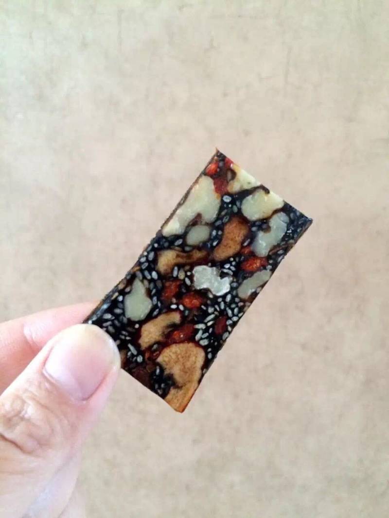 5:拌料,加入辅料顺序:红枣,核桃仁,枸杞,黑芝麻。