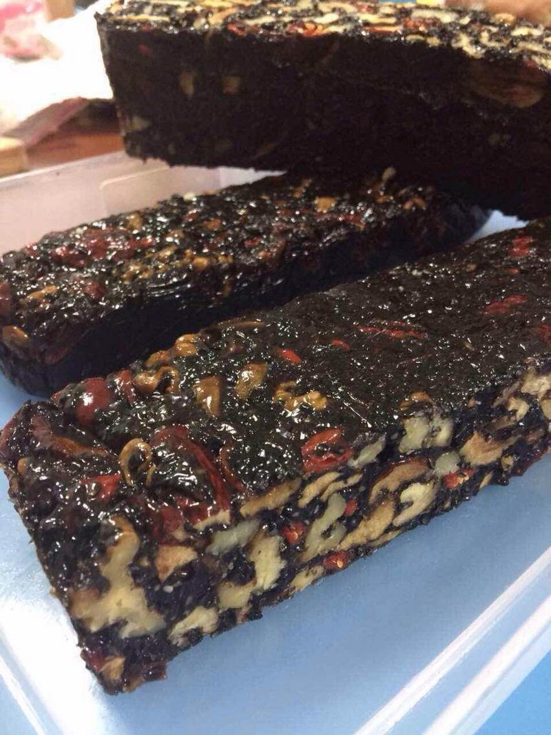 2:红枣清洗去核烘干水分,核桃仁掰成豆粒大小微火炒香,黑芝麻炒香,冰糖打成粉。