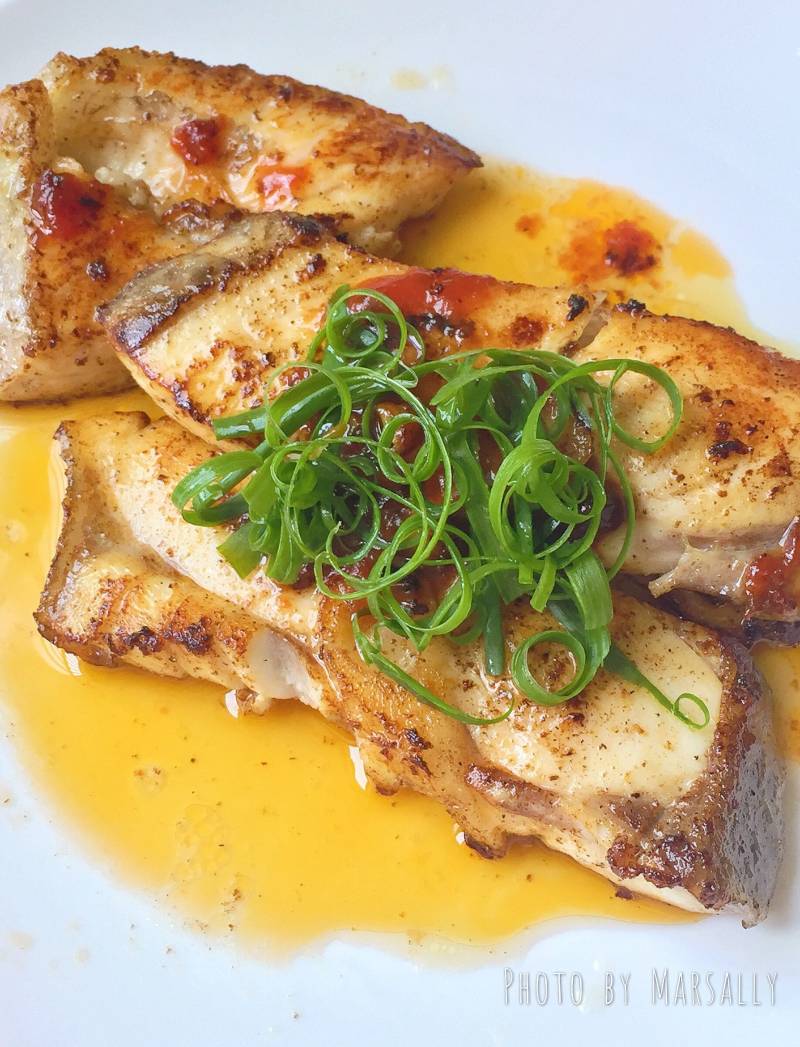 4:待黄油融化放入鳕鱼,煎至两面焦黄盛出