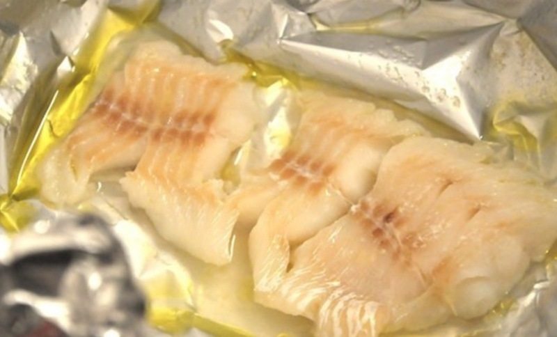 3:鳕鱼放在锡纸中间,撒一层盐,包上锡纸放进烤箱,180度15分钟。