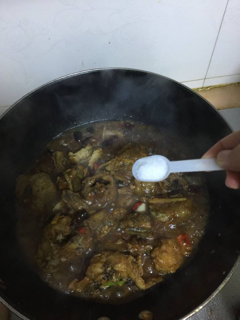 盐适量;老抽适量;蒜适量;干辣椒适量;鸡精适量;葱适量;姜适量;