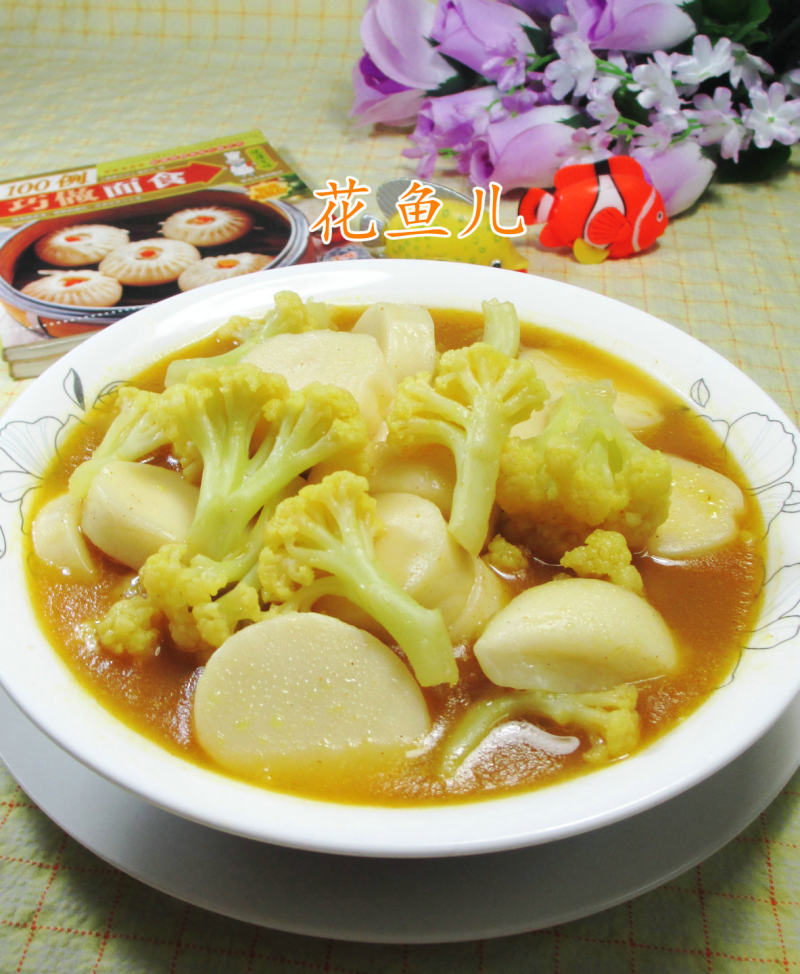 1:食材:花菜(已清洗)、年糕、咖喱块