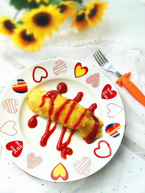 7:盛盘后淋适量番茄沙司即可。