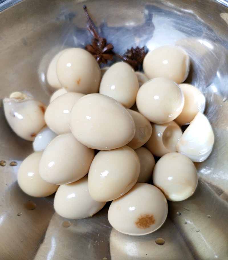 煮好的鹌鹑蛋一定要把蛋壳压裂,这样才能入味。