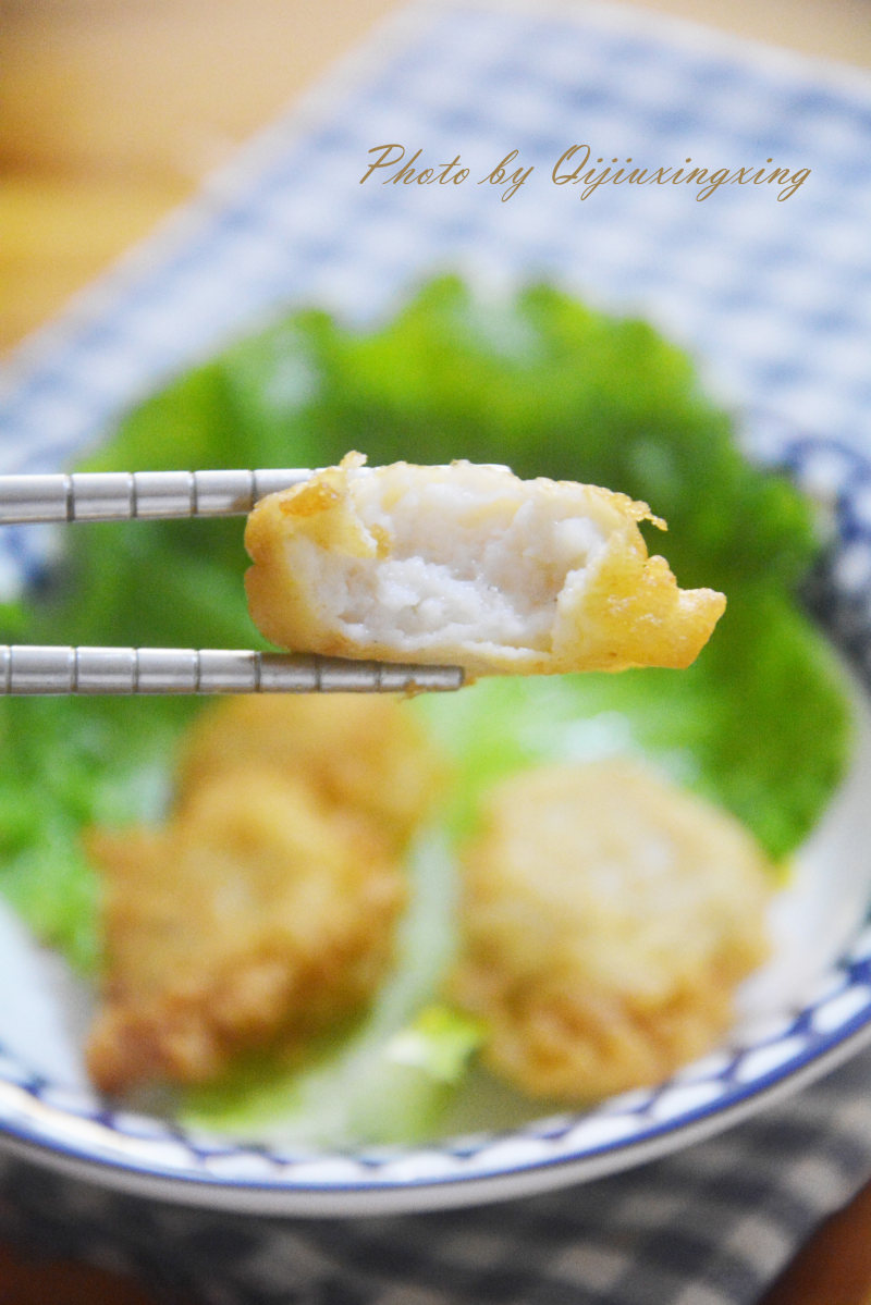 9:如果这时鱼糜比较湿软,可以适当加些玉米淀粉调和一下。