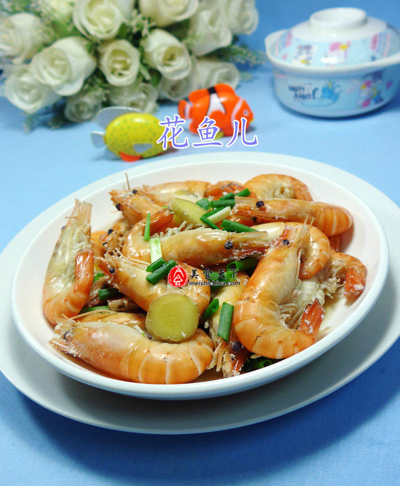 1:食材:大头虾、姜片、葱段