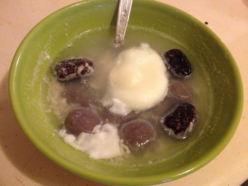 4:冷水下锅,汤圆飘起来放醪糟、红枣、西米(提前泡)黑糖。