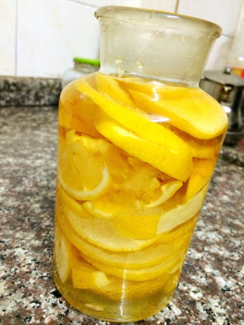 4:码一层柠檬,码一层冰糖,到瓶口处,倒入白醋,静置一月后饮用