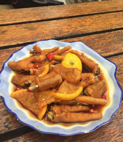 2:锅里加入适量水,八角,桂皮,姜,料酒,鸡爪大火烧开煮15分钟。