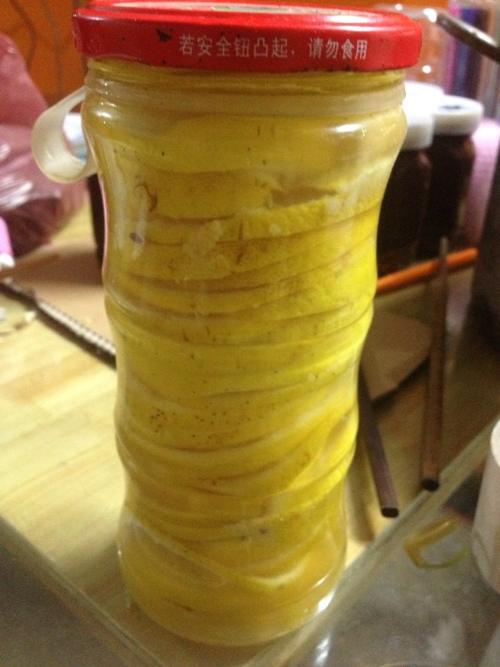5:做好的柠檬茶放在冰箱冷藏室里,第二天就可以开始喝了,一周内应用完毕为宜。每次一片柠檬一小勺柠檬蜂蜜水,加一杯温开水。