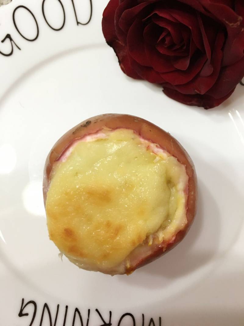 5:撒上提前准备好的马苏里拉芝士奶酪,外层包上锡纸,烤箱预热180度,十分钟芝士上色即可