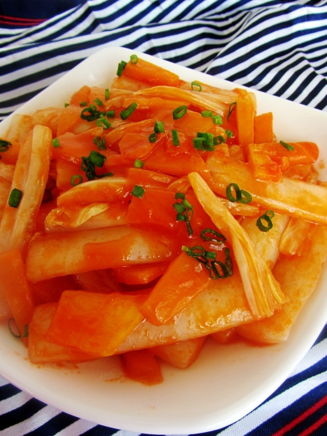 11:快速翻炒至年糕炒软,汤汁浓稠关火。