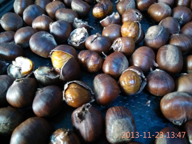 5:大约一小时,烤板栗结束;板栗肉已经瘦身一圈,口感有劲道而且特别甜。