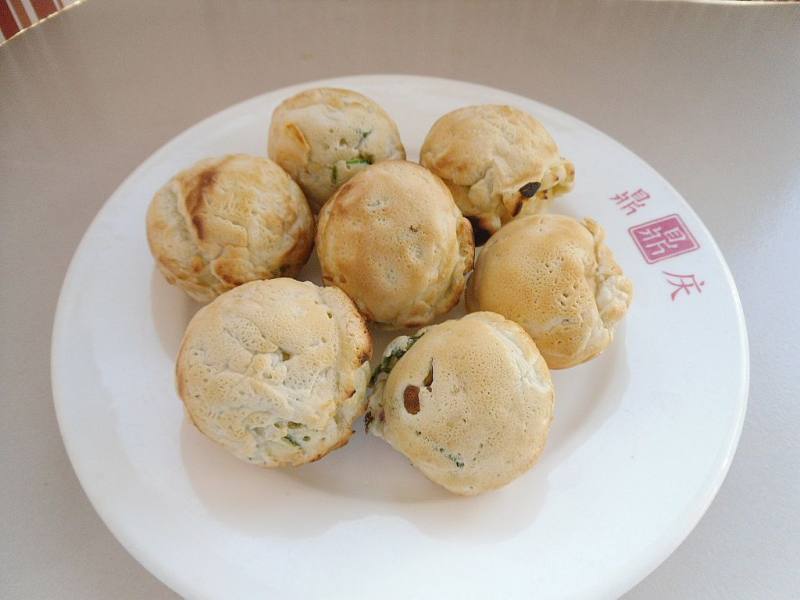 5:底面稍稍凝固,轻轻按一下边缘,即成小丸子形状。烙熟即可。