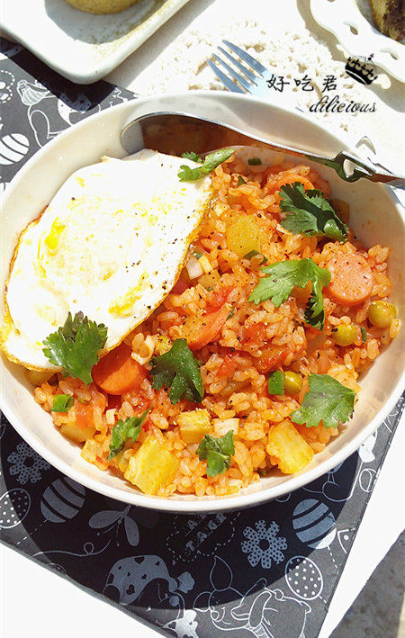 7:加番茄酱可以出锅啦,我的米饭太多这个蛋饼完全包不住了,不过味道还是很好的