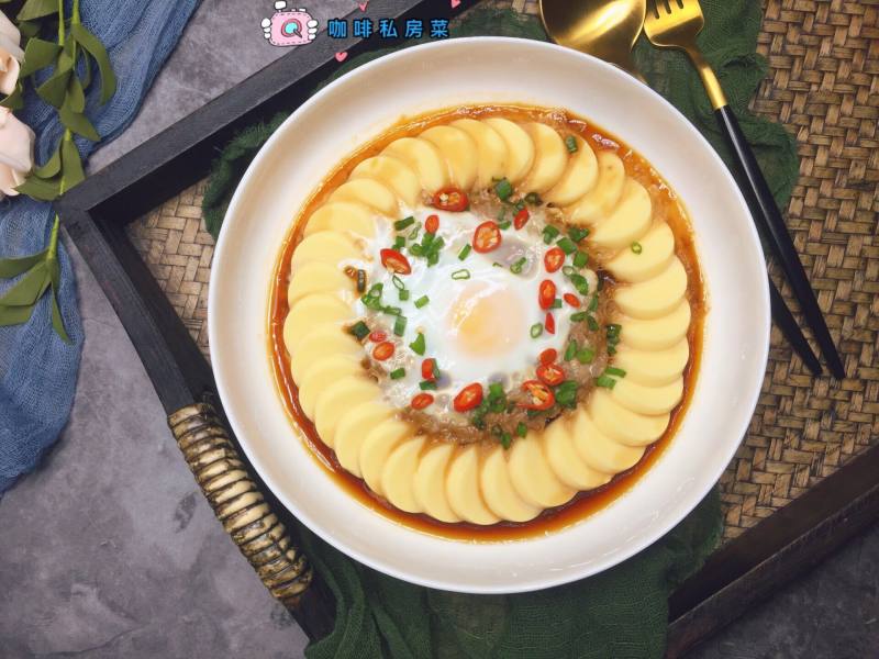 1、肉馅量少,因加入生抽、蚝油都有咸味,不用再另外放盐,本来肉馅的量不多,再放盐就咸了。2、玉子豆腐挤出袋子后先竖着控一下水,如果不控水蒸完水分比较多。3、肉馅在码入盘子的时候记得给鸡蛋留够足够的空间,否则鸡蛋液到处流,影响美观。4、最后的葱花,小米辣和蒸鱼豉油必要不可省,最后提升口感,有这一步,味道口感加分。