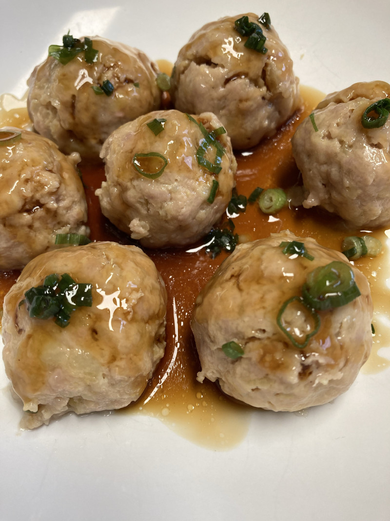 9:全部团好了,蒸锅上火,锅开后上丸子,蒸15分钟即可出锅