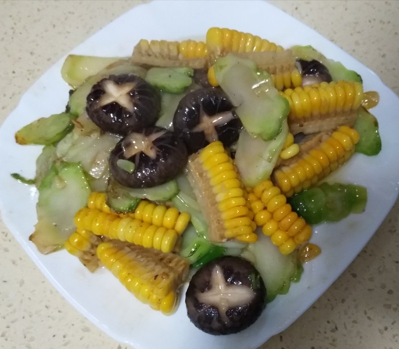 儿菜5颗;玉米半个;香菇6个;