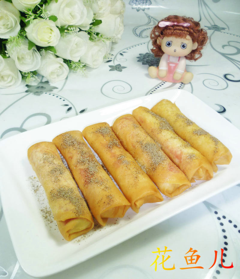 1:材料:春卷皮、蟹肉棒(已撕去包装)