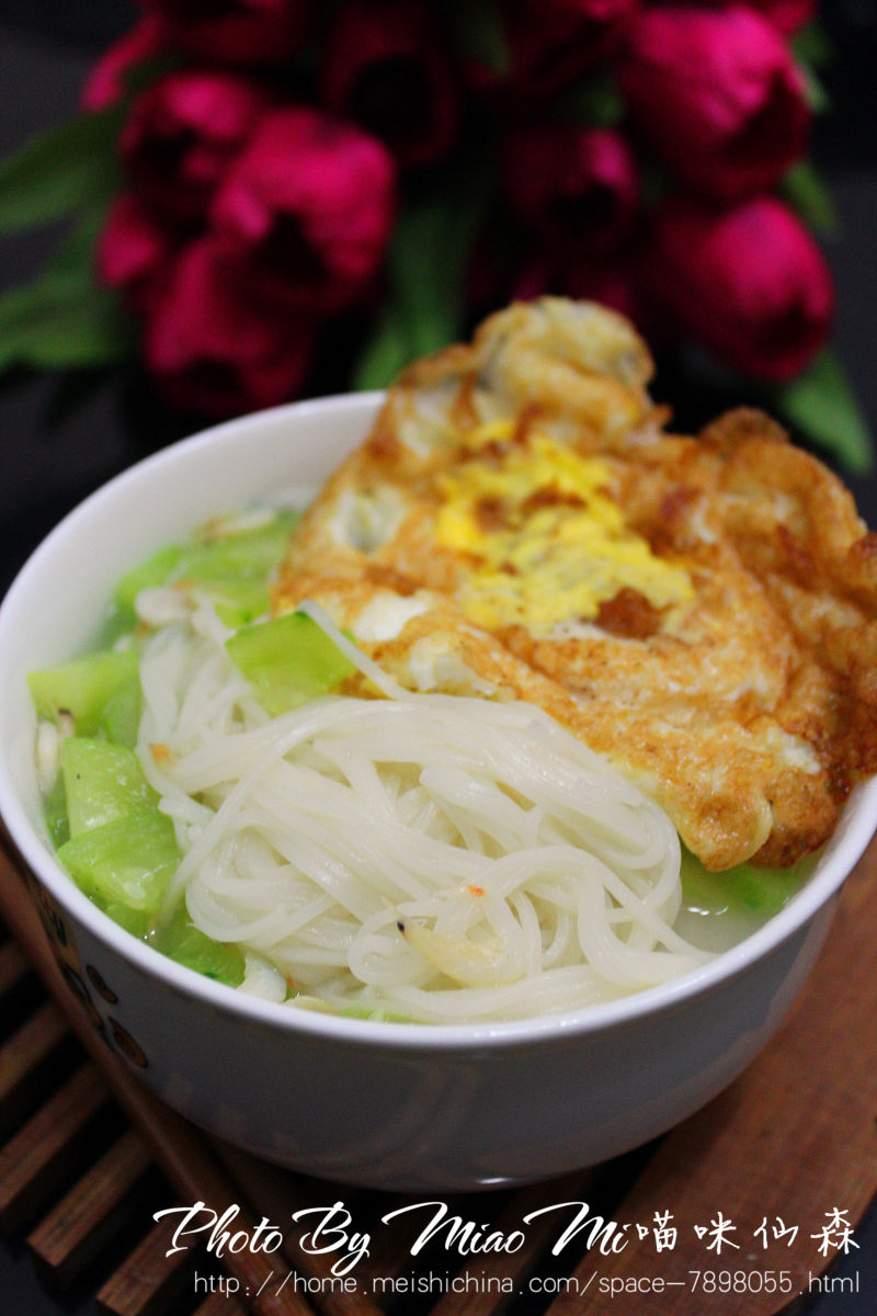 7:放龙须面。水开后,打入点凉白开,等再次煮开,直到面煮熟即可。最后上少许鸡精,即可