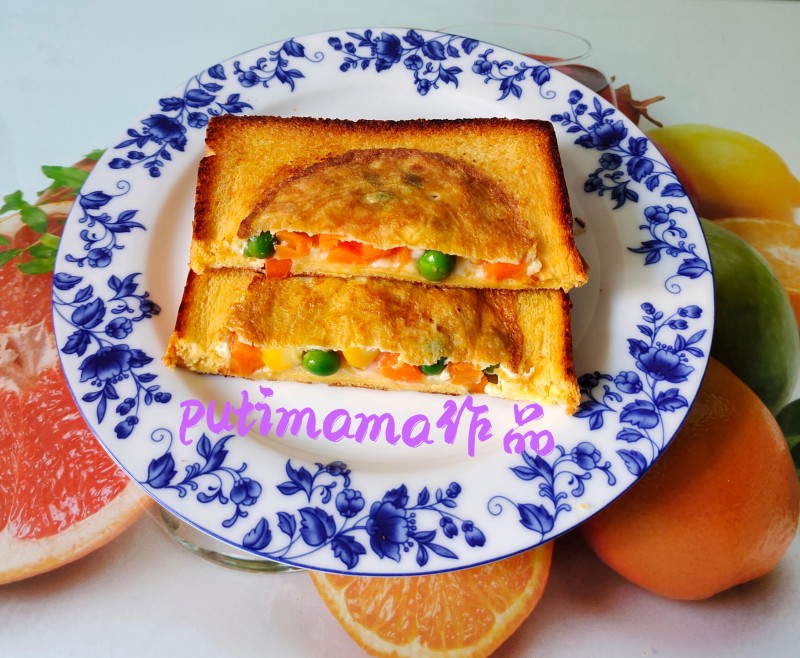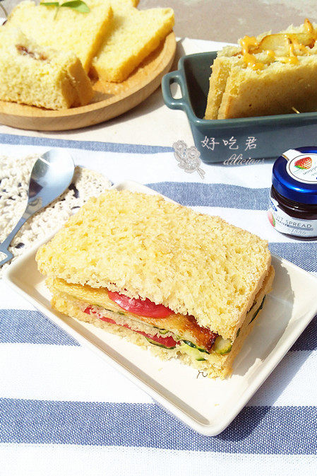 15:只剩一个成品三明治,孩子们都不太喜欢吃菜,所以做成三明治蔬菜也都吃了,口感很香、咸淡适宜(每次肉类的、蔬果的、海鲜的换样做,只是早上太忙、做好几样几乎无时间拍照)。