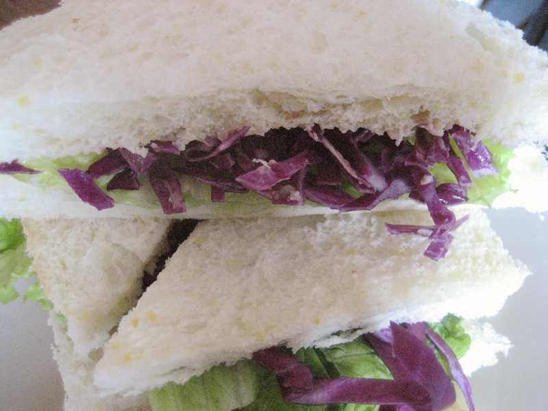 丘比沙拉酱适量;紫甘蓝适量;面包片适量;