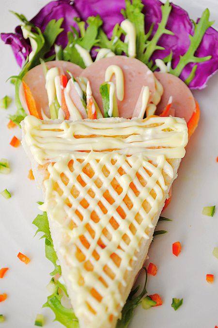 10:最近把丘比沙拉酱挤在裱花袋里,挤出脆筒的花纹。