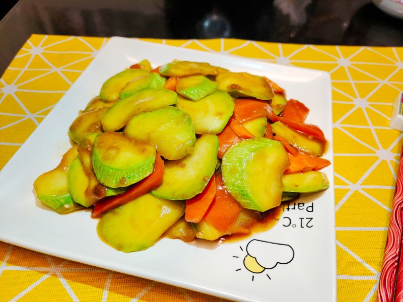 2:西葫芦洗净后去瓤,切片,胡萝卜切片。