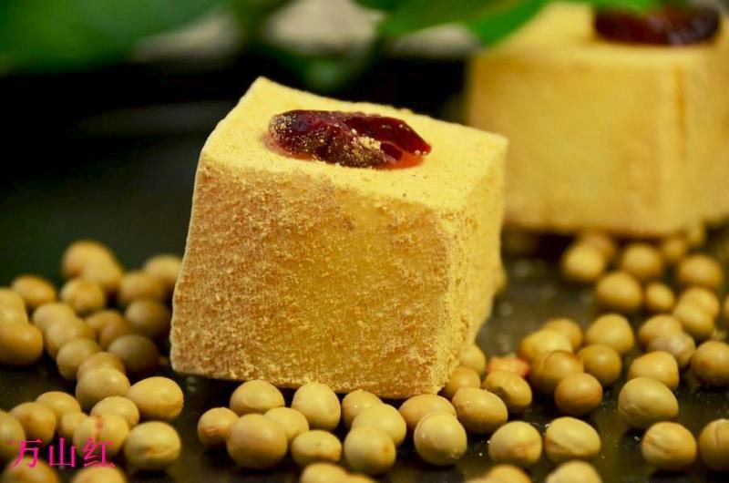 11:切成块,表面沾满黄豆粉就可以装盘上桌了。不加黄豆粉也可以的,只是我偏爱加了黄豆粉的。