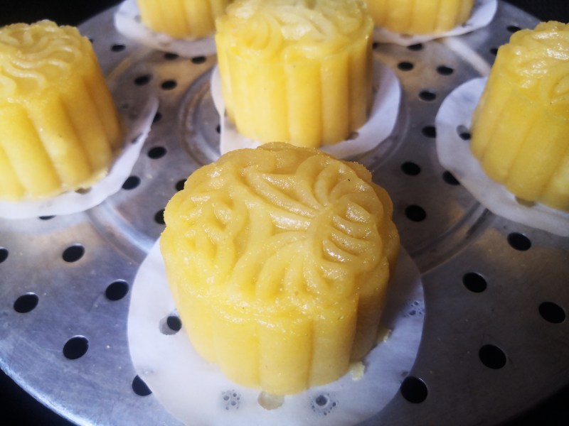 糯米粉12克;玉米淀粉12克;无油白豆沙30克;水40克;白砂糖17克;南瓜粉15克;