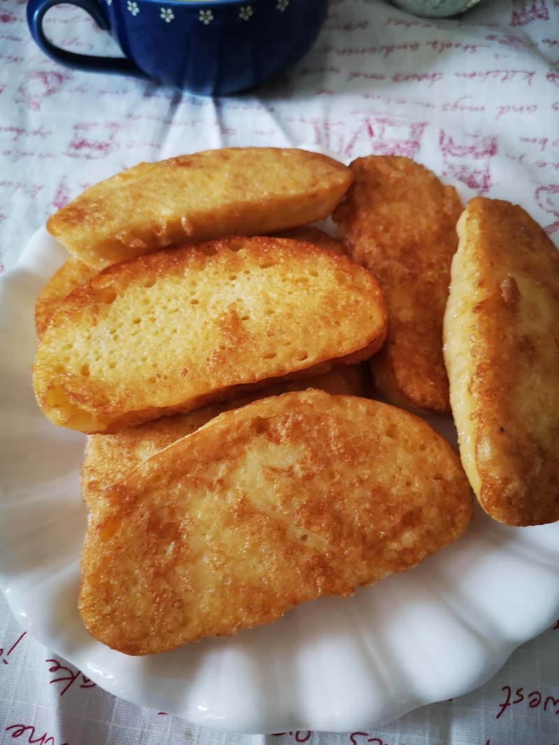 3:平底锅内热油,将切好的馒头片裹上鸡蛋放锅里煎至两面金黄即可。