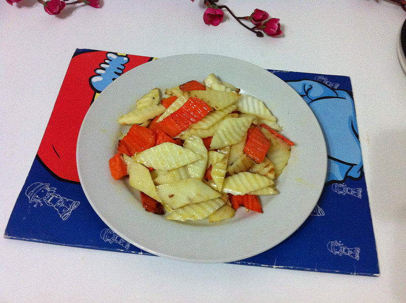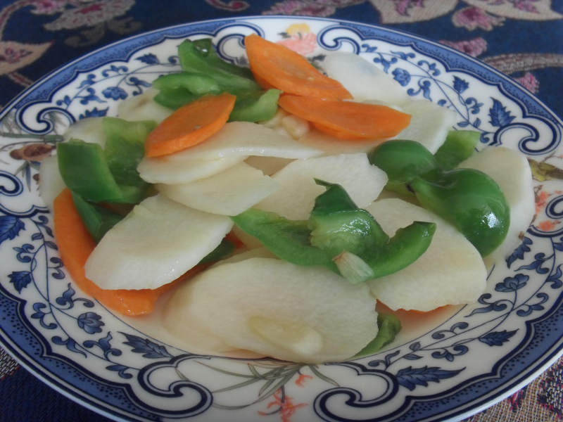 选用比较粗的菜山药,好去皮,去皮时注意带上手套,否则手会痒。