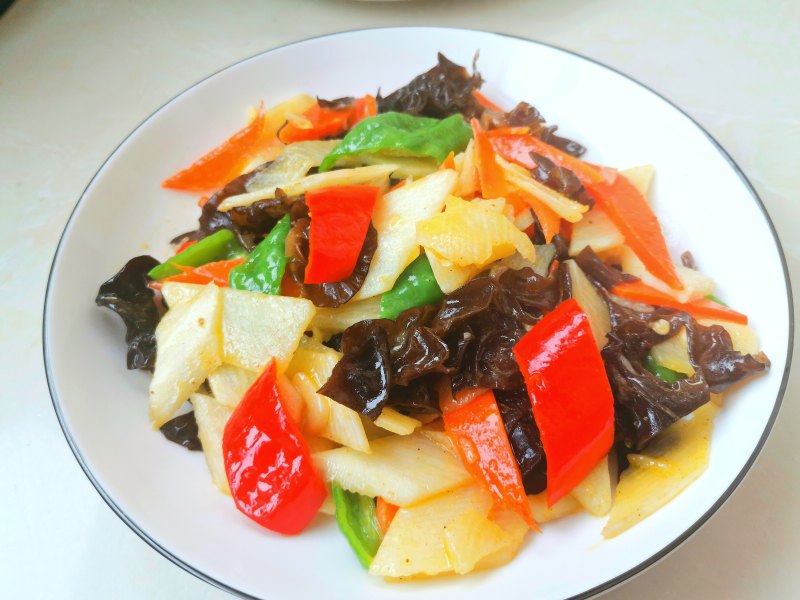 木耳适量;青红椒适量;胡萝卜适量;蒜适量;