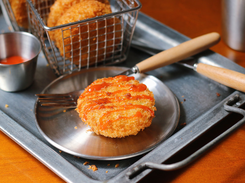 19:平底锅煎好的可乐饼,挤点番茄酱,就是小盆友爱吃的零食啦!