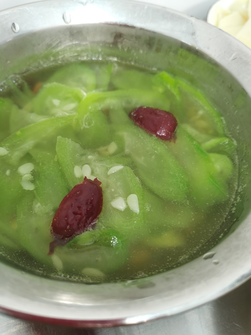 3:红枣煮好够放入丝瓜。