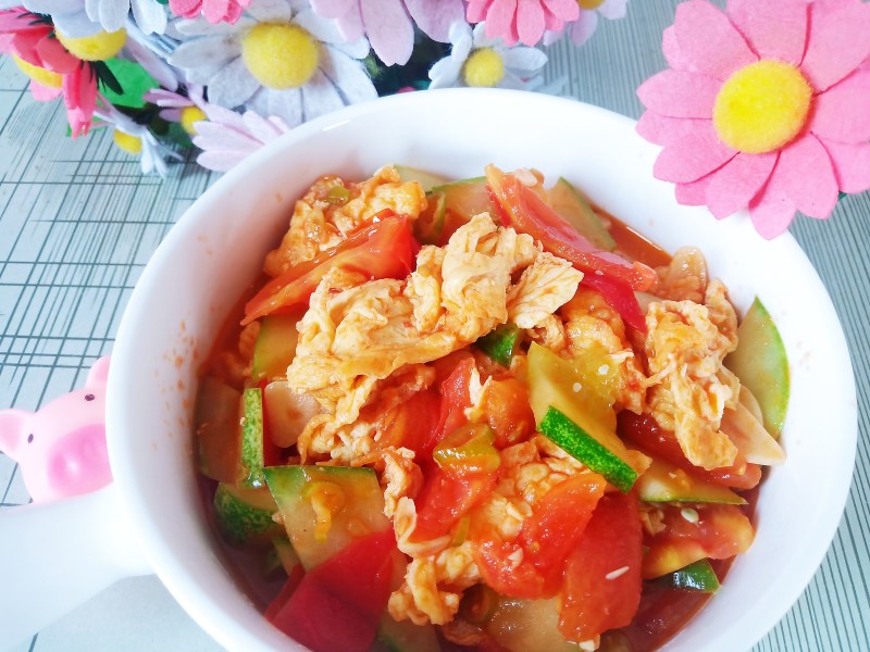 黄瓜2棵;番茄2个;鸡蛋1个;