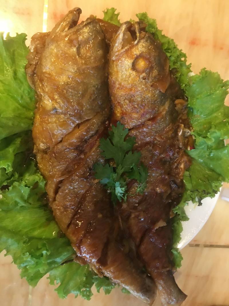 4:留底油爆香葱姜蒜末,放入鱼,然后喷醋,酱油番茄酱,倒入半碗水盖上锅盖炖至汤汁浓稠即可