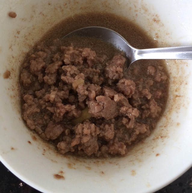 1:牛肉末用所有配料腌制