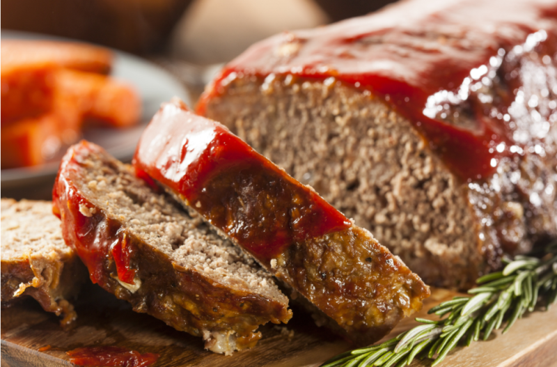 2:在一个大碗里,将牛肉、鸡蛋、洋葱、牛奶和面包或饼干屑混合。用盐和胡椒粉调味,然后放入涂了一层油的面包盘中,或者做成面包状,放入涂了一层油的烤盘中。