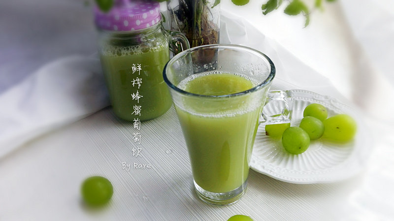 葡萄要选择无籽的,这样不会损伤榨汁机的刀片,蜂蜜的量要看自己的需要添加。